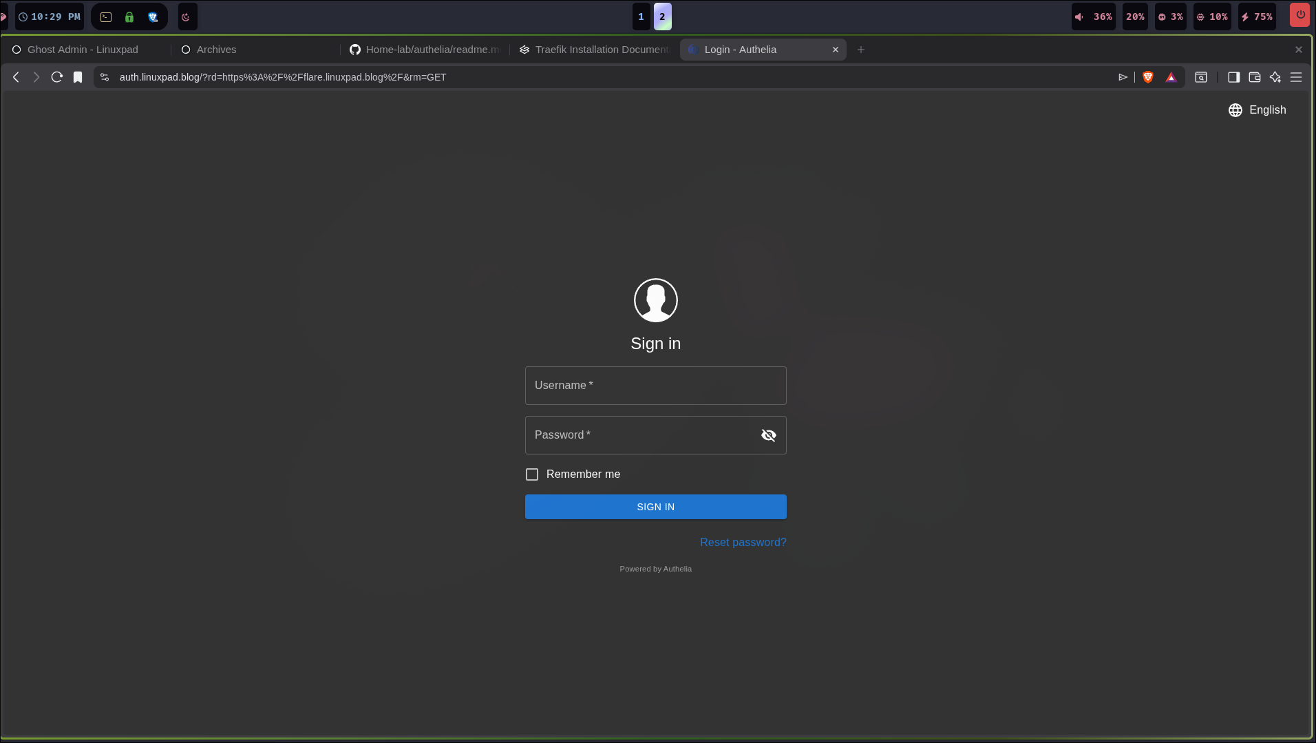 -v $PWD/traefik.yml:/etc/traefik/traefik.yml traefik:v3.6However, we want more than that by integrating an opensource authentication and authorization back-end server to fulfill identity as far as security is concerned. I am going to use Authelia for this service. This ensures that only authorized people can have access to your server.