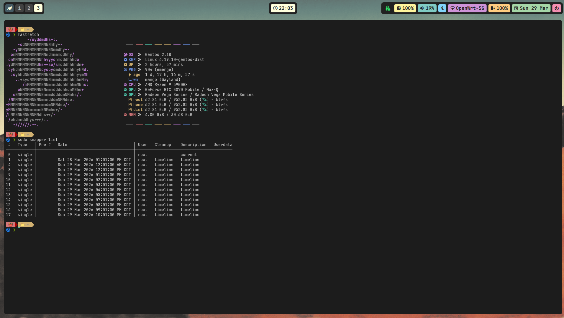 Backup Your Gentoo System With Snapper.