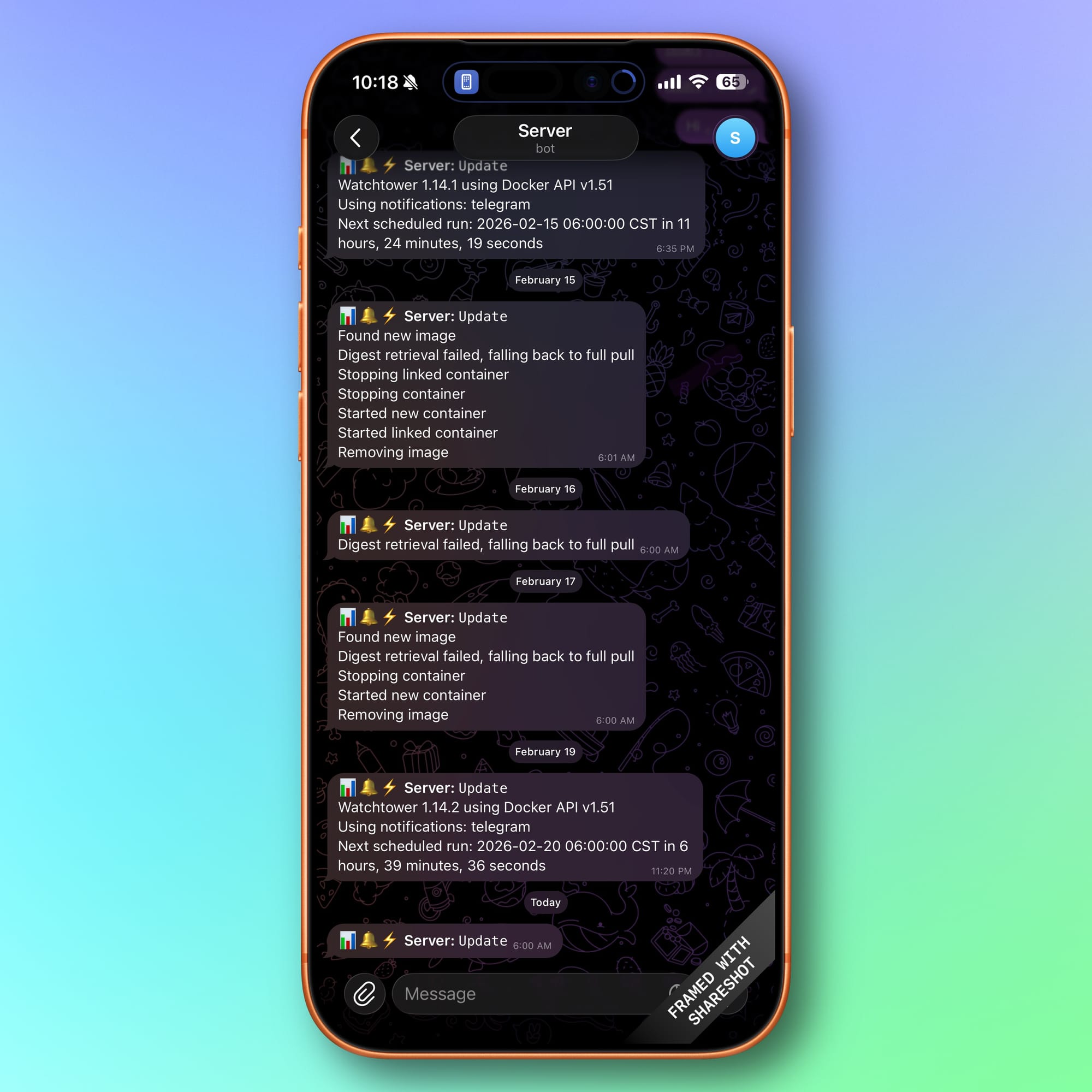 However, if you want to get regular updates on your micro-services whenever they're being updated, continue with this step. Watchtower allows you to send notifications to messengers when the container is updated. In this article we will figure out how to set up a notification for the Telegram messenger.